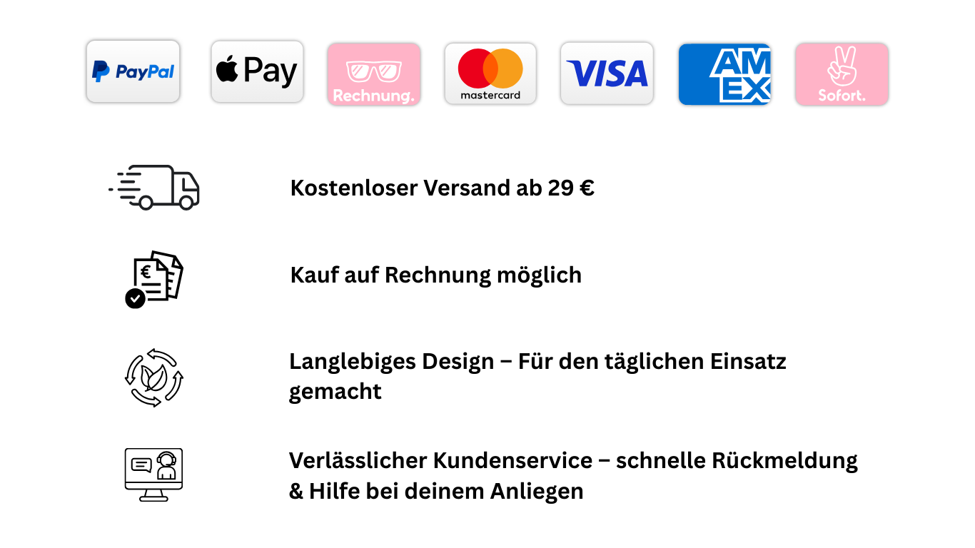 Um deine Bestellung sicher und schnell bezahlen zu können, bieten wir dir eine Vielzahl an Bezahlmöglichkeiten. Du hast die Wahl zwischen: